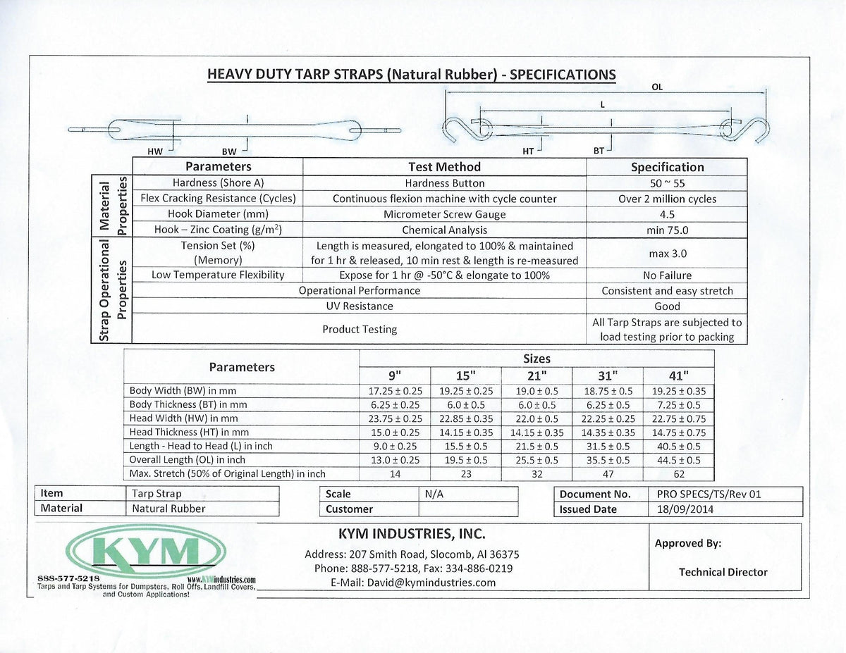 These 15" Heavy Duty Natural rubber tarp straps come with a wire S-Hook attached on each end and have a maximum stretch of 23". These straps are perfect for securing your tarp to your truck or trailer.