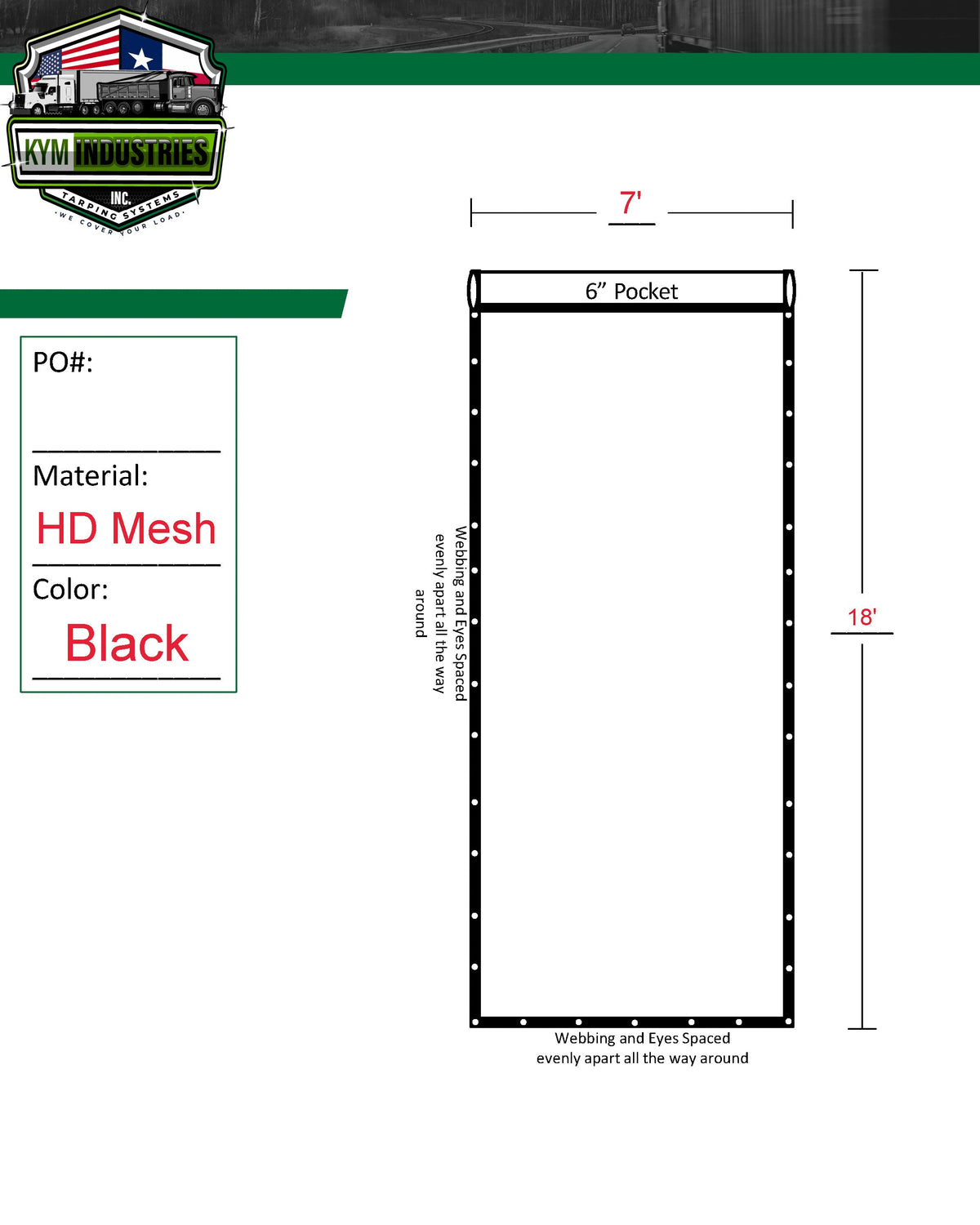 This tarp replaces US Tarp 84-18-BM, Carolina Tarps DT-BM-7x18, and Donovan 20-84-18-BM.