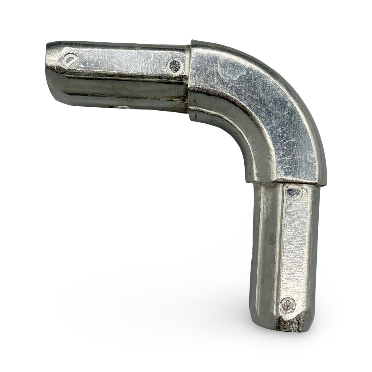 The aluminum 90-degree corner connects the tarp system upper arm to the cross tube.