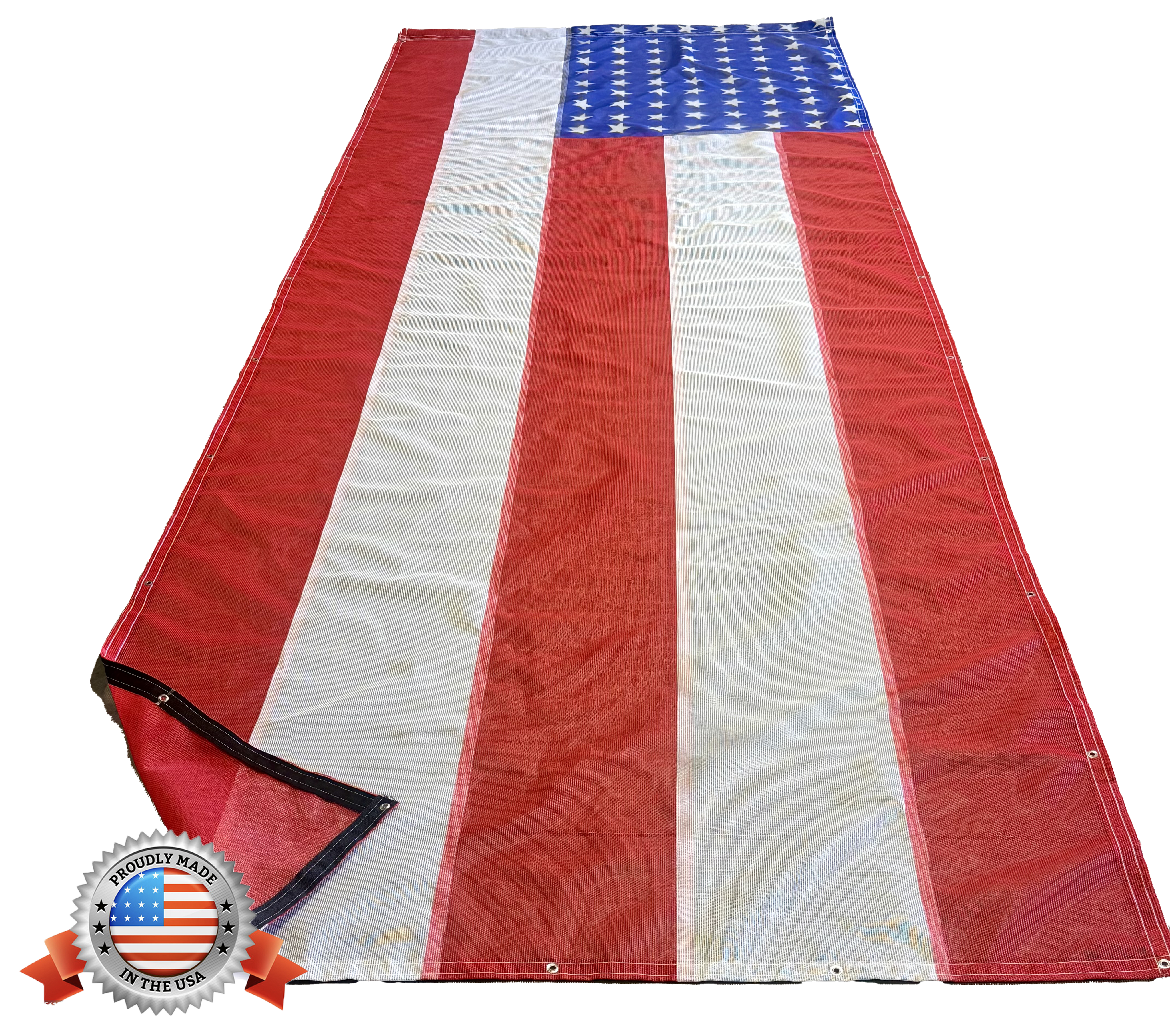 Take pride in your work and showcase your patriotism with our American Flag Tarp made right here in the USA! Built tough for heavy-duty use, this tarp is crafted from premium, UV-resistant material that ensures durability while keeping your cargo protected. This design allows for optimal airflow, reducing wind drag and preventing tarp ballooning during transport.