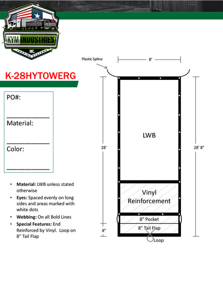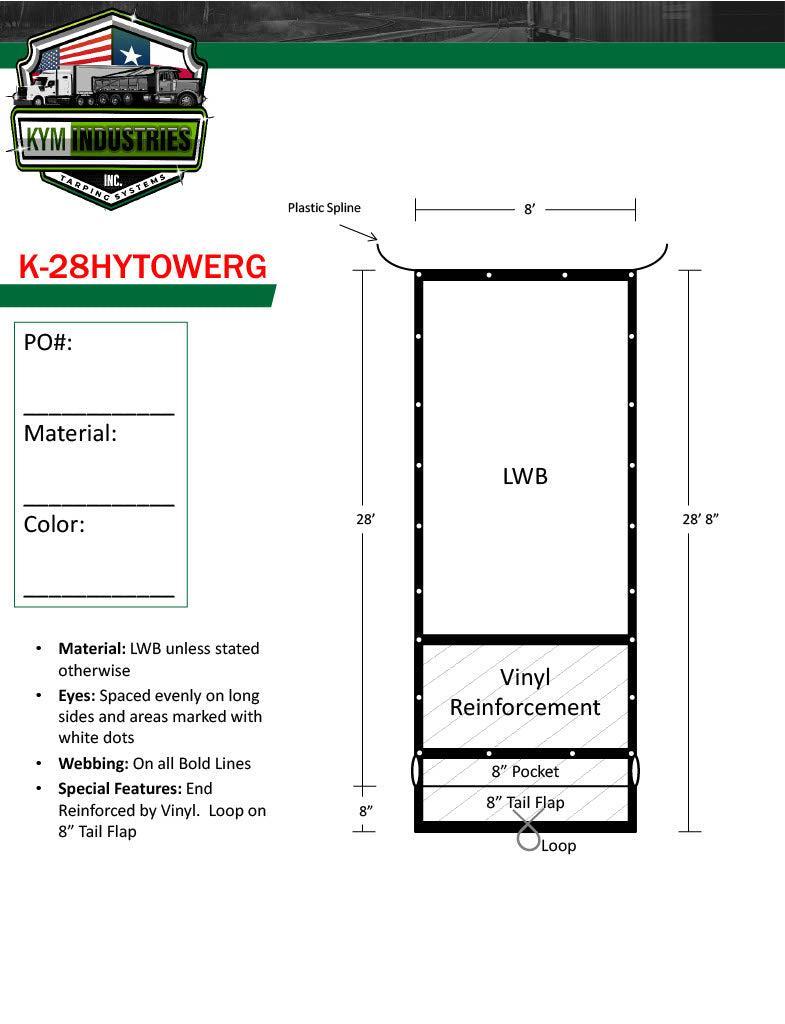 Hy-Tower Style LWB Straight Cut Tarp with Tail Flap and Plastic Spline 8' X 28'8"