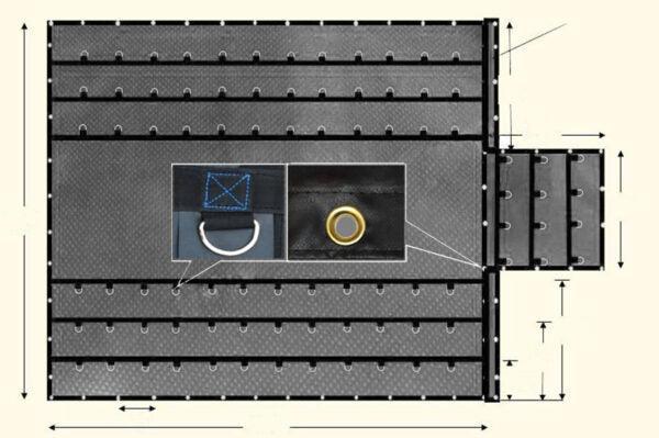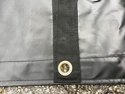 Our flatbed tarps are made of heavy-duty 14oz or 18oz waterproof vinyl. They are UV and mildew resistant, with waterproof, heat-welded seams, and hemmed edges. The sides have three rows of D-rings, box-stitched with a flap to protect against damage from hooks and straps. If proper care is taken, these tarps will hold up to the rugged demands of the flatbed trucking industry with no problem, letting you rest easy and focus on safely delivering your load. That said, all fabric will tear if they are pulled over sharp corners or edges, so be sure to pad your load with appropriate protective equipment.