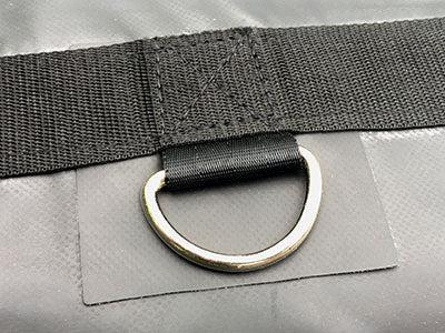 - D-Rings: 3 rows of D-rings, box-stitched with protective flap. D-rings are spaced every 24" with a row at 31", 61", and 91".