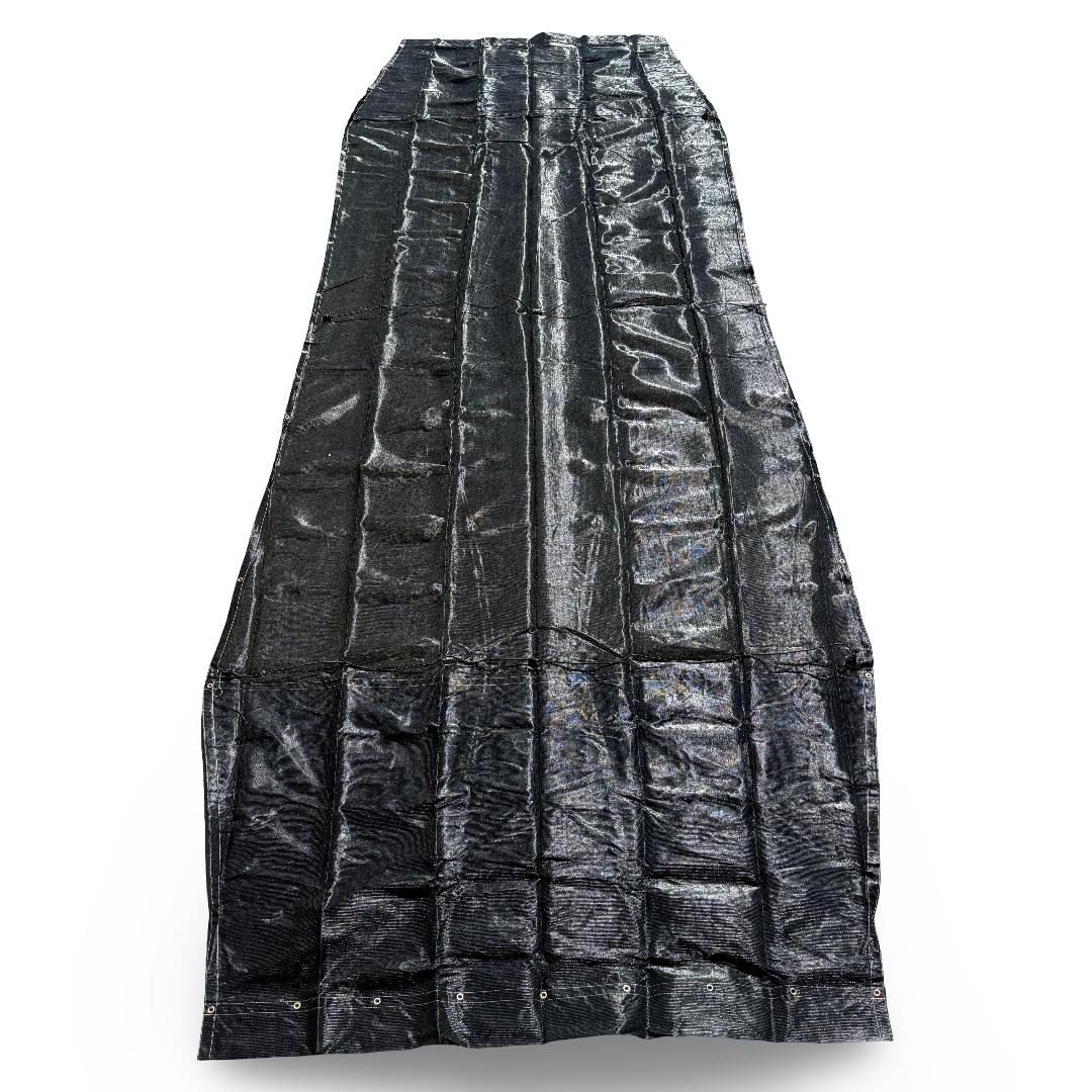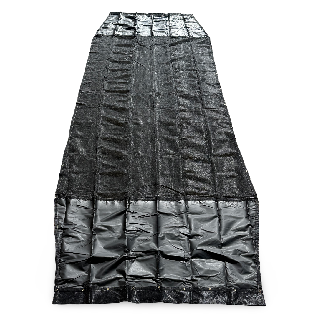 Light-Weight Black Mesh universal auto tarp with self retractable flaps for waste Roll-Off and refuse trucks. It will fit auto tarp systems such as the O'Brian, Rack and Pinion, Pioneer and K-Pac.