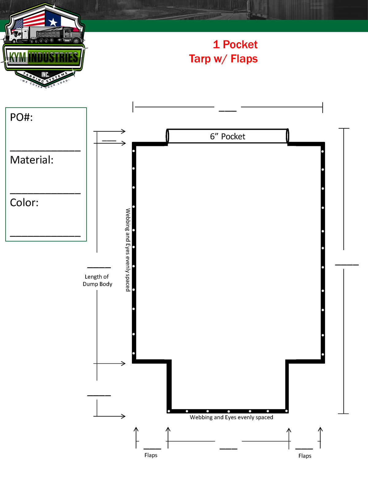 Measure the width of your tarp roller and subtract 4" to get your tarp width. This will prevent the tarp from bunching up on the sides of the roller. Add 2' to the length of the body to get the tarp length. This will leave extra tarp on the roller and help with uneven loads.