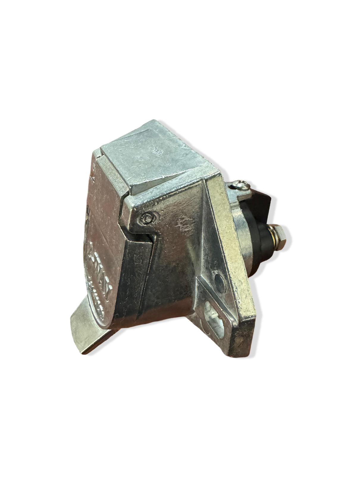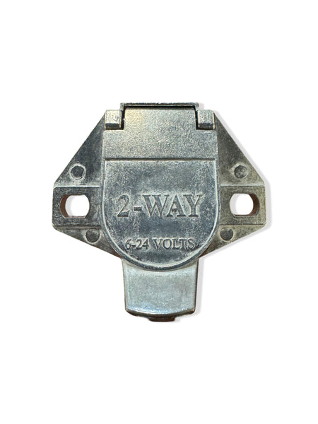 Vertical dual pole connector socket only. This vertical plug socket is great for tractors that need to detach from their trailer every night or every now and again. This socket is rated from 6V to 24V and UP TO 200A. We recommend running 12V and 50A MAX but the socket is capable of handling more.